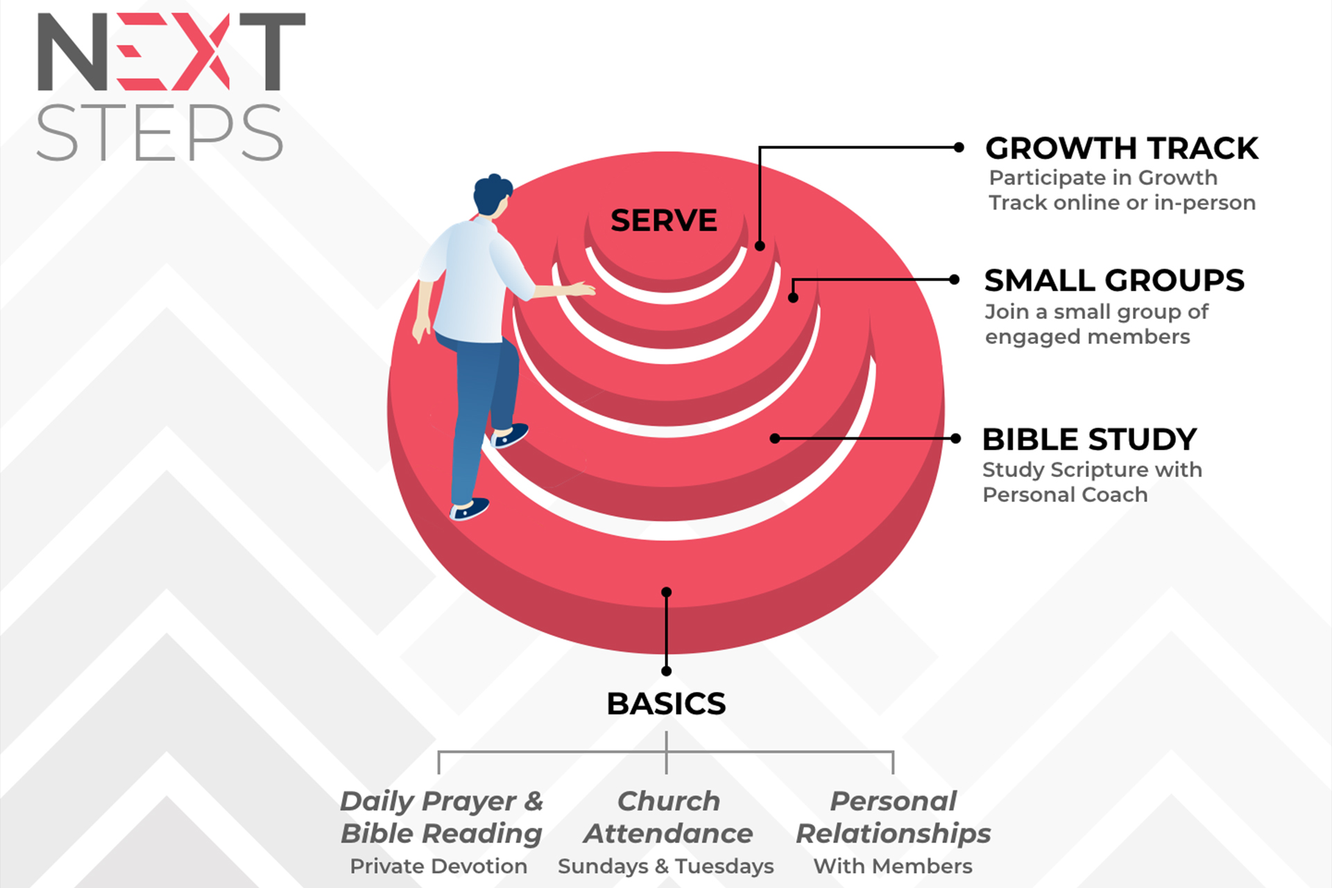 In an effort to follow Jesus’ model and the patterns of scripture, we have compiled some information here to give you an idea of what we believe discipleship will look like beyond simple obedience to the saving Gospel message (John 3:3-5, Acts 2:38). Outside of the basics of personal devotion (i.e., daily prayer and Bible reading), faithful attendance to services, and creating personal relationships with other members in the church; we also offer the Growth Track program, one-on-one personal or home Bible studies (can be conducted anywhere), and small groups as various tools to help you get growing in your walk with God.
